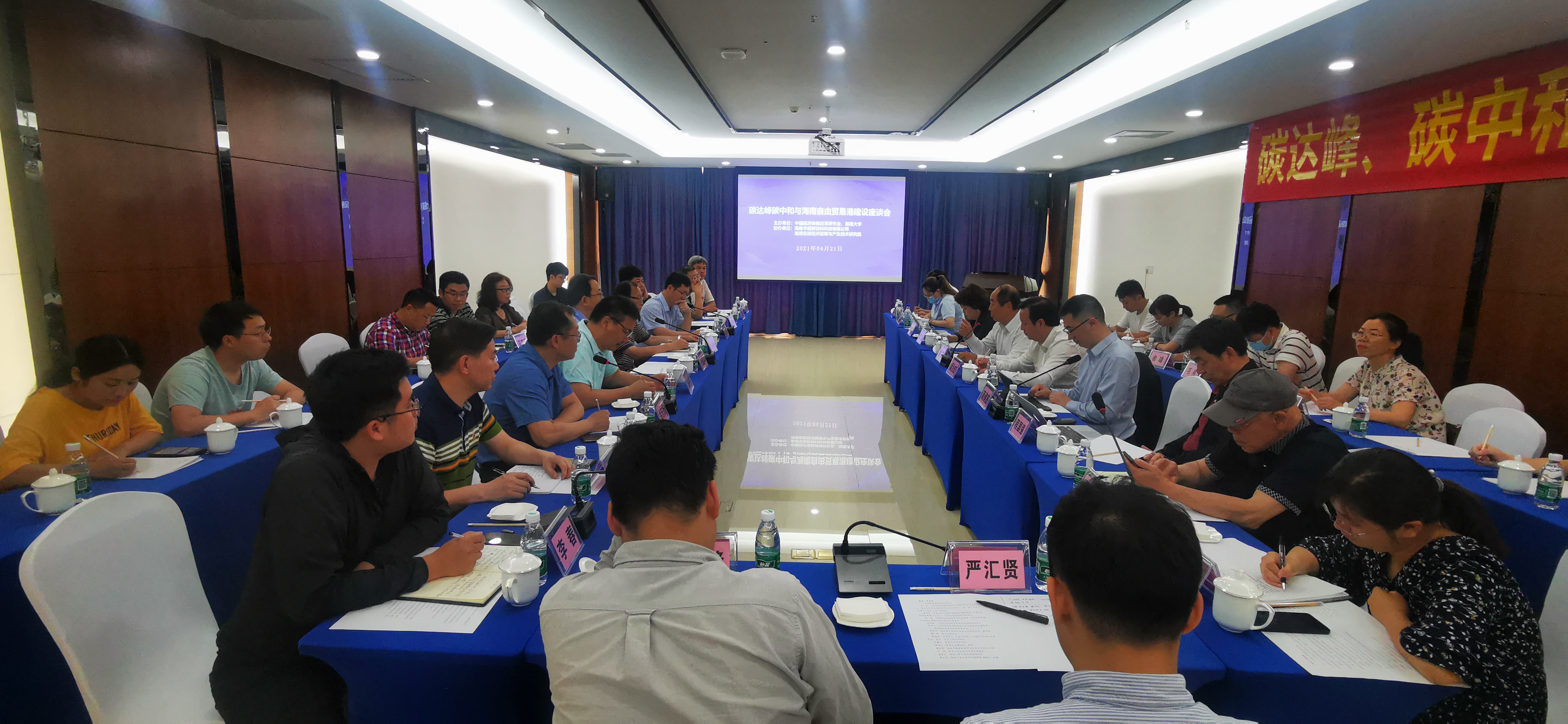 2021年4月21日,我會與海南大學聯(lián)合舉辦海南自貿港碳達峰碳中和體制機制改革座談會。我會常務副會長兼秘書長趙艾發(fā)表主旨演講,海南大學黨委書記武耀廷致歡迎詞。與會領導和專家學者就生態(tài)文明建設體制機制改革,推進碳達峰、碳中和與海南自由貿易港建設研究等議題進行了探討交流。
