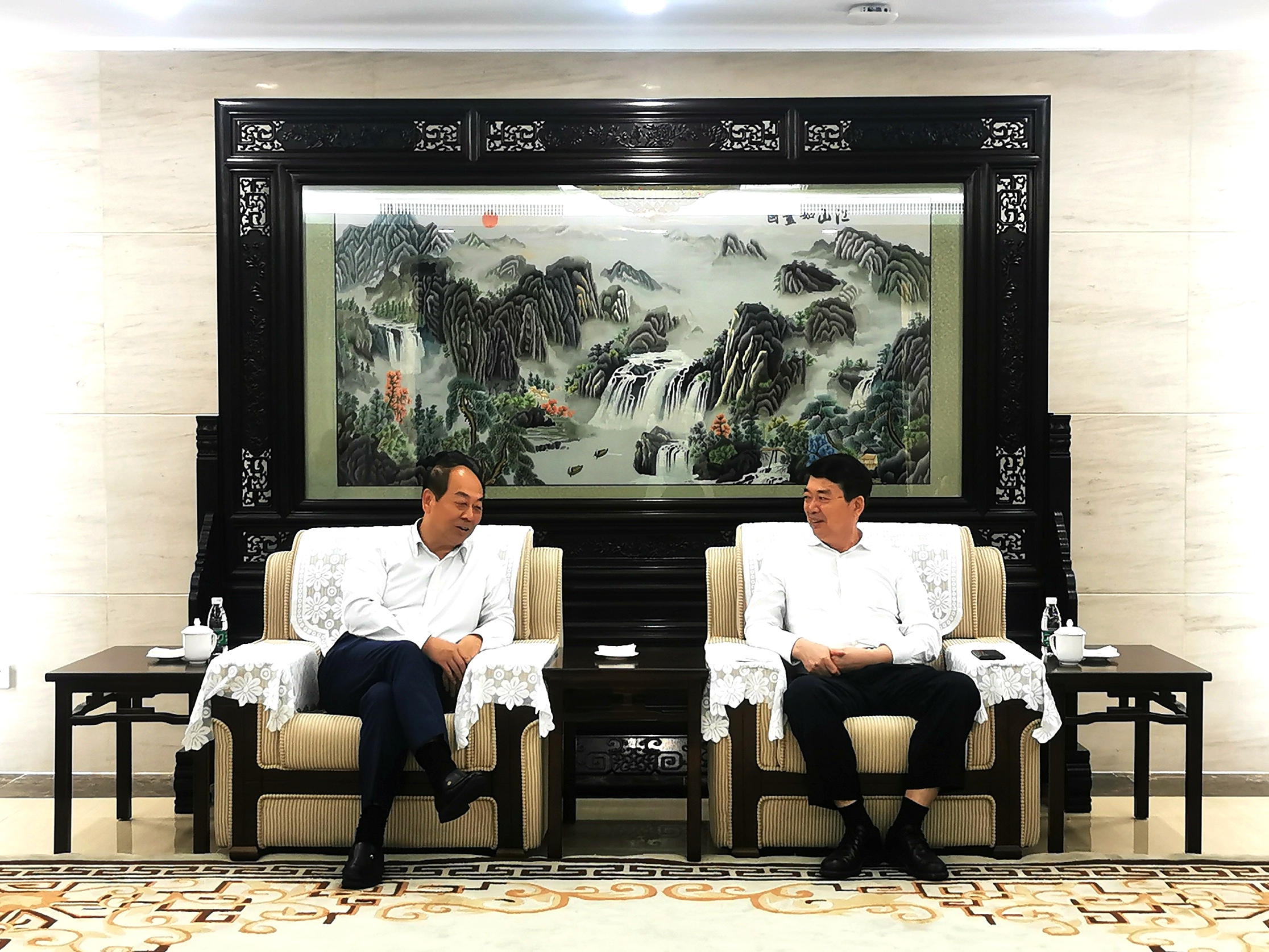 我會常務副會長兼秘書長趙艾(左)和海南大學黨委書記武耀廷(右)座談