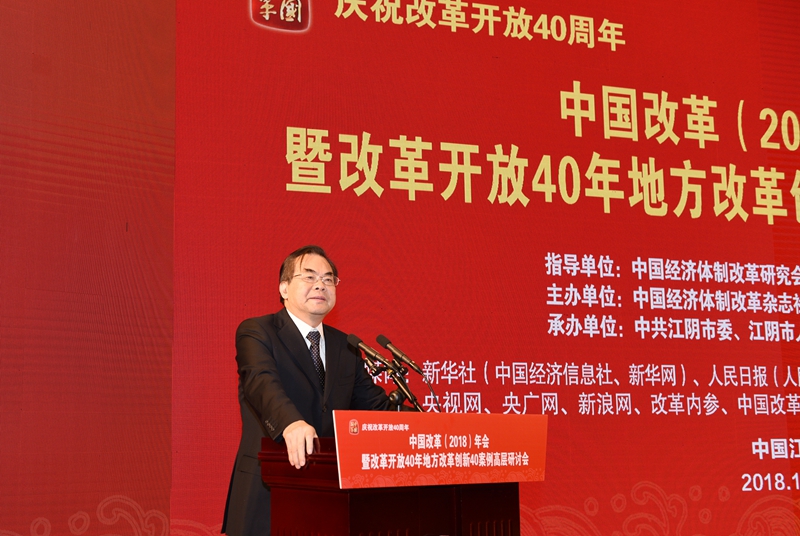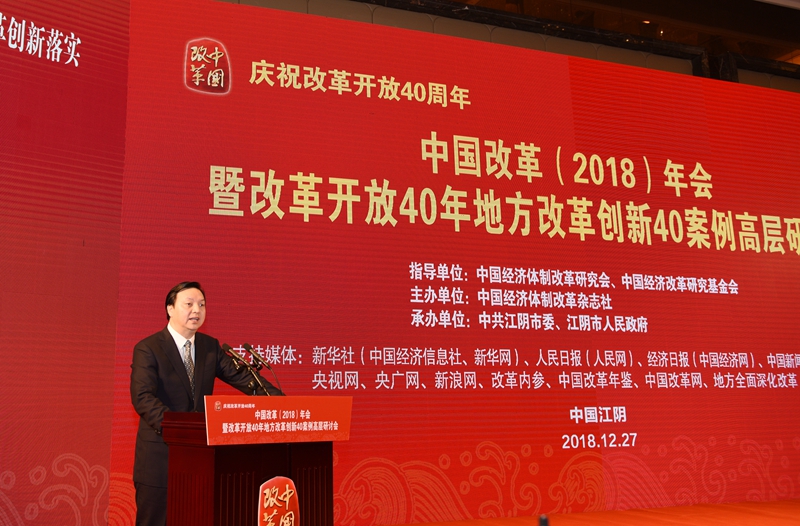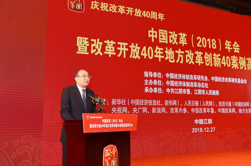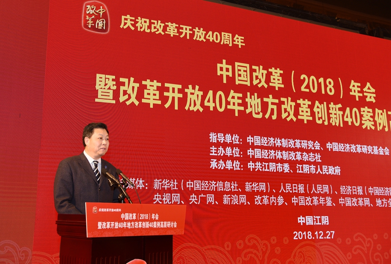 2018年12月27日,由中國經(jīng)濟體制改革研究會、中國經(jīng)濟改革研究基金會指導(dǎo),中國經(jīng)濟體制改革雜志社主辦,中共江陰市委、江陰市人民政府承辦的“慶祝改革開放40周年——中國改革(2018)年會暨改革開放40年地方改革創(chuàng)新40案例高層研討會”在江蘇省江陰市召開。