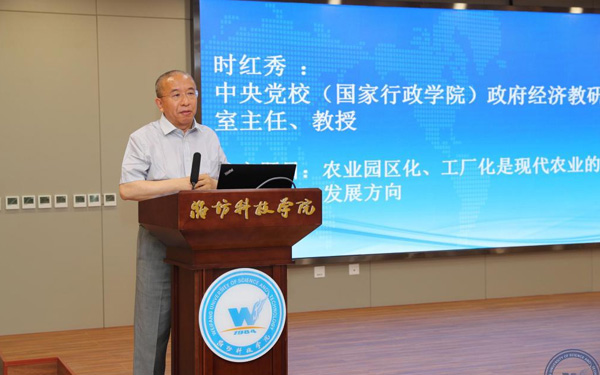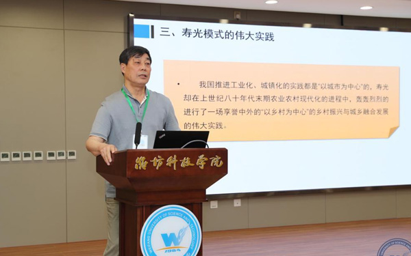 壽光市人大常委會(huì)副主任、濰坊科技學(xué)院校長(zhǎng)李昌武在致辭中表示,濰坊市委副書(shū)記、壽光市委書(shū)記林紅玉同志在全市三級(jí)干部會(huì)議上,對(duì)我校提出全面提升辦學(xué)水平,提高社會(huì)服務(wù)能力,加快推進(jìn)碩士點(diǎn)培育建設(shè)的要求。為落實(shí)林書(shū)記講話要求,加強(qiáng)區(qū)域經(jīng)濟(jì)和“壽光模式”研究,壽光市人民政府與中國(guó)經(jīng)濟(jì)體制改革研究會(huì)等聯(lián)合成立的“新時(shí)代鄉(xiāng)村振興與區(qū)域經(jīng)濟(jì)發(fā)展研究院”掛靠學(xué)院,引進(jìn)了大批高層次人才,形成了一批富有創(chuàng)造性、建設(shè)性的學(xué)術(shù)研究成果和決策咨詢意見(jiàn),“壽光模式”研究成果在國(guó)家發(fā)改委《改革內(nèi)參》刊發(fā)。成立了國(guó)家二級(jí)學(xué)會(huì)農(nóng)學(xué)思想與《齊民要術(shù)》研究會(huì),連續(xù)成功舉辦了10屆中華農(nóng)圣文化國(guó)際研討會(huì),師生原創(chuàng)52集動(dòng)畫(huà)片《農(nóng)圣賈思勰》在中央電視臺(tái)和山東衛(wèi)視播出。學(xué)校組建了博士、教授農(nóng)學(xué)科研服務(wù)團(tuán)隊(duì),成立了蔬菜產(chǎn)業(yè)學(xué)院、農(nóng)業(yè)技術(shù)培訓(xùn)基地,自主研發(fā)蔬菜品種28個(gè),在全國(guó)7個(gè)省區(qū)建立了育種基地,開(kāi)發(fā)運(yùn)營(yíng)了壽光市農(nóng)業(yè)智慧監(jiān)管服務(wù)公共平臺(tái),打造了覆蓋設(shè)施農(nóng)業(yè)全產(chǎn)業(yè)鏈的專業(yè)服務(wù)體系,為創(chuàng)新提升“壽光模式”和鄉(xiāng)村振興戰(zhàn)略的實(shí)施提供了有力支撐。