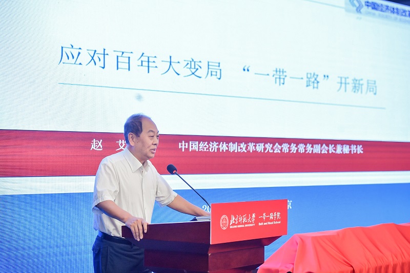 9月3日,我會(huì)常務(wù)副會(huì)長(zhǎng)兼秘書長(zhǎng)趙艾應(yīng)邀出席北京師范大學(xué)120周年華誕慶典活動(dòng)期間舉辦的第四屆京師“一帶一路”論壇暨《高質(zhì)量共建“一帶一路”叢書》發(fā)布會(huì)并在開幕式上以“應(yīng)對(duì)百年大變局,一帶一路開新局”為題致辭。