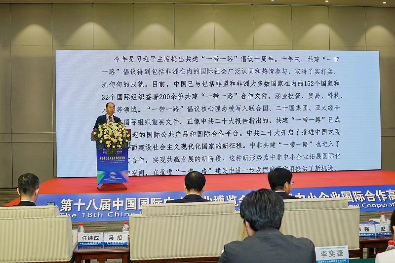 趙艾講到,今年是習(xí)近平主席提出共建“一帶一路”倡議十周年。十年來(lái),共建“一帶一路”倡議得到包括非洲在內(nèi)的國(guó)際社會(huì)廣泛認(rèn)同和熱情參與,取得了實(shí)打?qū)?、沉甸甸的成就。中共二十大開(kāi)啟了推進(jìn)中國(guó)式現(xiàn)代化,全面建設(shè)社會(huì)主義現(xiàn)代化國(guó)家的新征程。中非共建“一帶一路”也進(jìn)入了深化務(wù)實(shí)合作,實(shí)現(xiàn)共贏發(fā)展的新階段。這種新形勢(shì)為中非中小企業(yè)拓展國(guó)際化互利合作空間,在推進(jìn)“一帶一路”建設(shè)中進(jìn)一步發(fā)揮重要作用提供了新機(jī)遇。