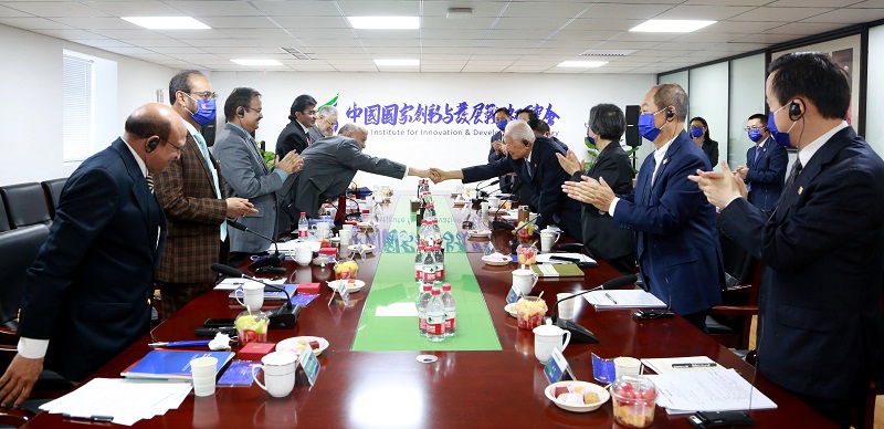 對話會由中國國創(chuàng)會副會長馮煒主持,中國國創(chuàng)會學(xué)術(shù)委員會常務(wù)副主席李君如,中國國創(chuàng)會會長徐偉新等出席并發(fā)言。巴基斯坦國務(wù)部長、國家衛(wèi)生服務(wù)監(jiān)管協(xié)調(diào)部部長馬赫什·庫馬爾·馬拉尼,國民議會外事委員會主席穆赫辛·賈維德,國民議會議會事務(wù)委員會主席穆罕默德·阿布巴卡,國民議會議員高斯·巴克斯·汗·馬哈爾,國民議會科技委員會、國家衛(wèi)生服務(wù)監(jiān)管協(xié)調(diào)委員會委員尼薩爾·艾哈邁德·切瑪,參議院電力事務(wù)委員會、國家衛(wèi)生服務(wù)監(jiān)管協(xié)調(diào)委員會、科技與水資源事務(wù)委員會委員薩娜·賈瑪麗出席對話會并發(fā)言。