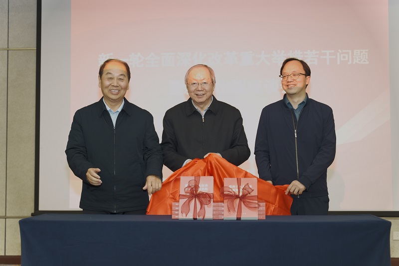 彭森、趙艾、陳光耀共同為《黨的十八大以來(lái)全面深化改革的實(shí)踐與進(jìn)展》岀版發(fā)行揭幕。我會(huì)科研部主任南儲(chǔ)鑫就《黨的十八大以來(lái)全面深化改革的實(shí)踐與進(jìn)展》課題研究及新書(shū)編輯岀版背景、過(guò)程等作了介紹。我會(huì)公共政策部主任諶利民研究員代表參與研究及撰稿人員發(fā)言。