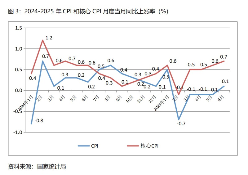 扣除食品和能源價格的核心CPI保持了上漲態(tài)勢,但漲幅較為有限。上半年核心CPI上漲0.4%,其中1月份上漲0.6%,2月份下降0.1%,3月份以來漲幅呈現(xiàn)回升的態(tài)勢,3月份和4月份均上漲0.5%,5月份上漲0.6%,6月份上漲0.7%。從核心價格變動走勢看,今年以來經濟運行表現(xiàn)出活力有所增強的態(tài)勢。